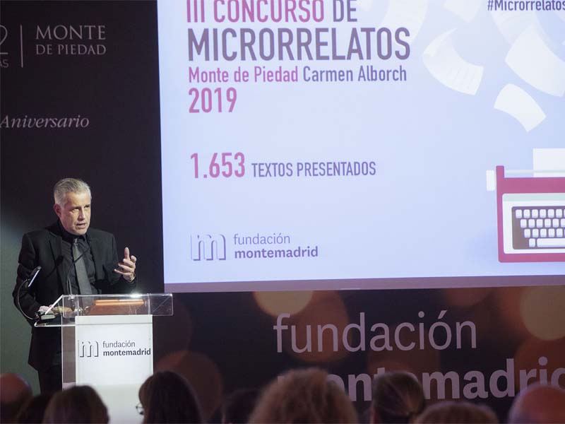 Tras la subasta tuvo lugar la entrega de premios del III Concurso de Microrrelatos Monte de Piedad Carmen Alborch, en el que participaron más de 1.600 microrrelatos y cuyo jurado, presidido por Cristóbal Sánchez, director general de la Fundación Montemadrid, estuvo compuesto por los periodistas y escritores Antonio Lucas, Mara Torres, Ignacio Elguero y Carlos del Amor.